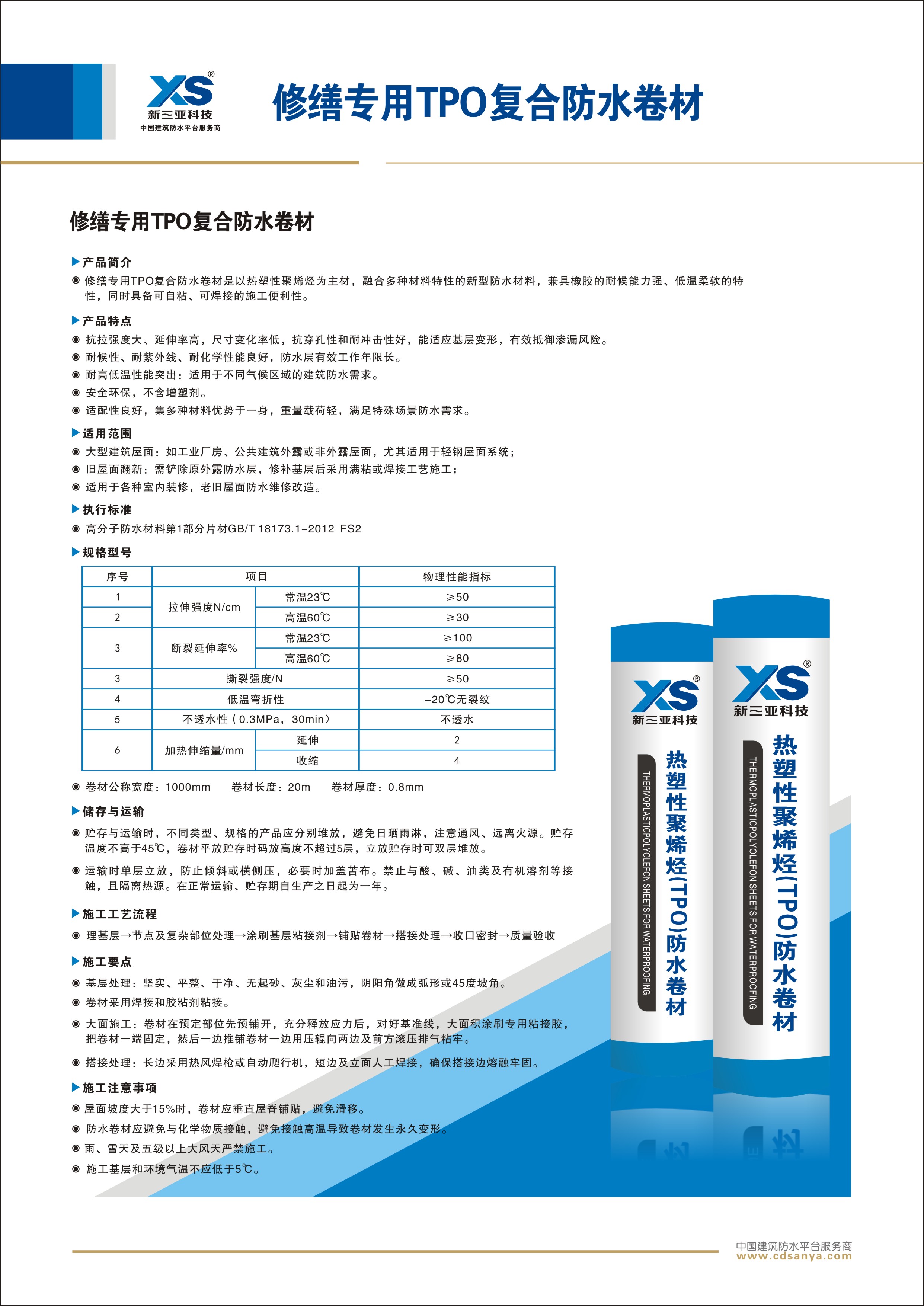 產(chǎn)品簡介: 修繕專用TPO復(fù)合防水卷材是以熱塑性聚烯烴為主材,融合多種材料特性的新型防水材料,兼具橡膠的耐候能力強(qiáng)、低溫柔軟的特性,同時具備可自粘、可焊接的施工便利性。 規(guī)格:FS2-TPO-20.0m×1.15m×0.8mm | ![]() |